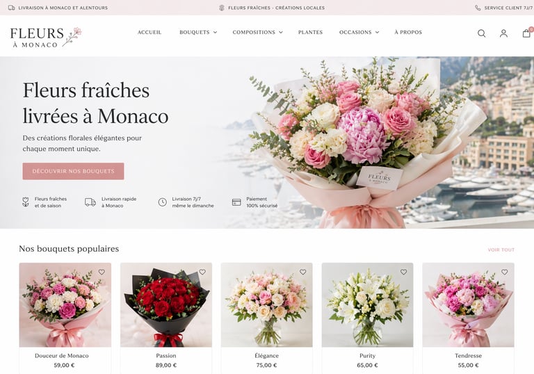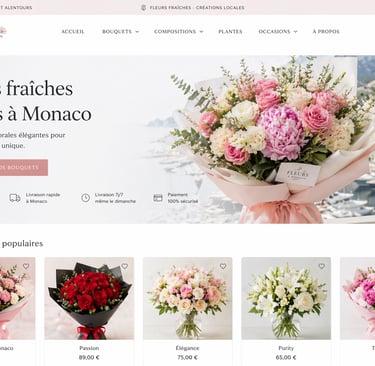 Site moderne avec choix de bouquets et paiement en ligne → Vente directe et plus de clients