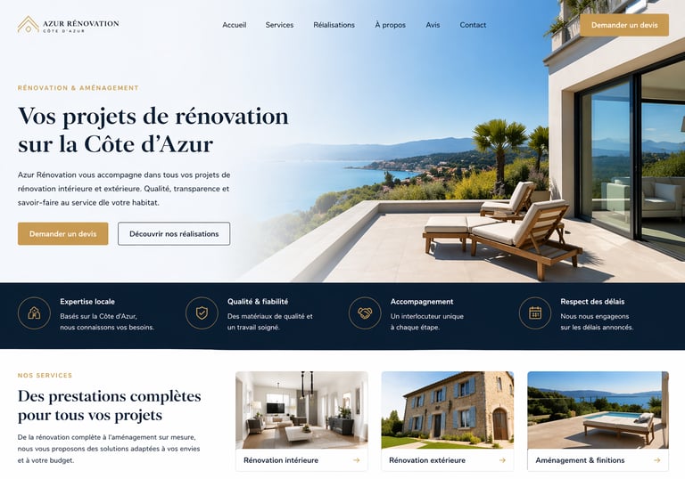 Site moderne avec formulaire de devis et contact WhatsApp → Génère des demandes clients en continu